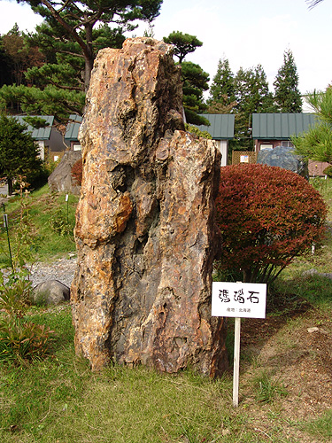 全国から集められた稀石の数々が見るものを圧倒する大スケールの石庭です。 ![]() 北海道「日高の赤石」 ![]() 巨大な瑪瑙。(メノウ:七宝の一つとして数えられ、ジュエリーや数珠などにしばしば用いられる鉱石。) ![]() 岩盤浴などで効果が高いとされるゲルマニウムを含むことで知られる「木紋石」。その名の通り、木のような模様が見られます。 ![]() 「紅簾石」別名ピーモンタイトと呼ばれる鉱物。徳島産。 ![]() 「沙流川石」北海道の一級河川である沙流川から産出した石。沙流川は2004年全国一級河川の水質調査で1位に選ばれている。 ![]() 虎目石(とらめいし:角閃石の一種で美しい縞模様が特徴。アクセサリーなどによく用いられる。) ![]() 「金山石」は写真のように後ろ側から見ると猿の横顔に見えるユニークな石。 |